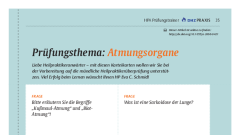 Neue Karteikarten zur Prüfungsvorbereitung finden Sie in jeder Ausgabe der DHZ, für die Sie als Heilpraktikeranwärter 50% Rabatt bekommen.