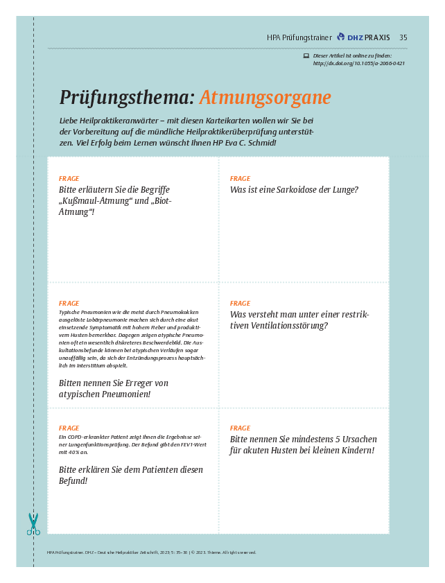 Neue Karteikarten zur Prüfungsvorbereitung finden Sie in jeder Ausgabe der DHZ, für die Sie als Heilpraktikeranwärter 50% Rabatt bekommen.