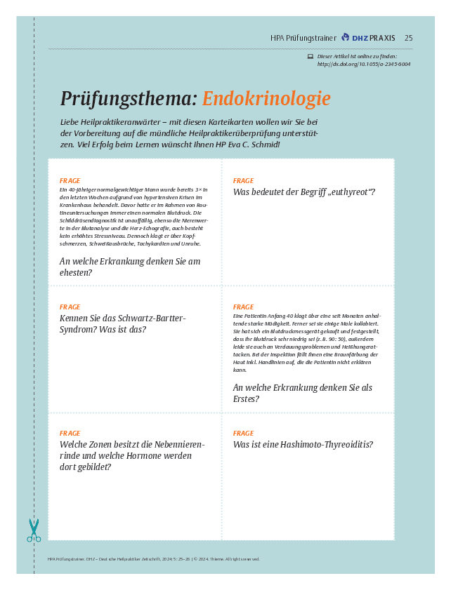 Neue Karteikarten zur Prüfungsvorbereitung finden Sie in jeder Ausgabe der DHZ, für die Sie als Heilpraktikeranwärter 50% Rabatt bekommen.